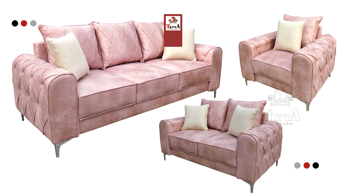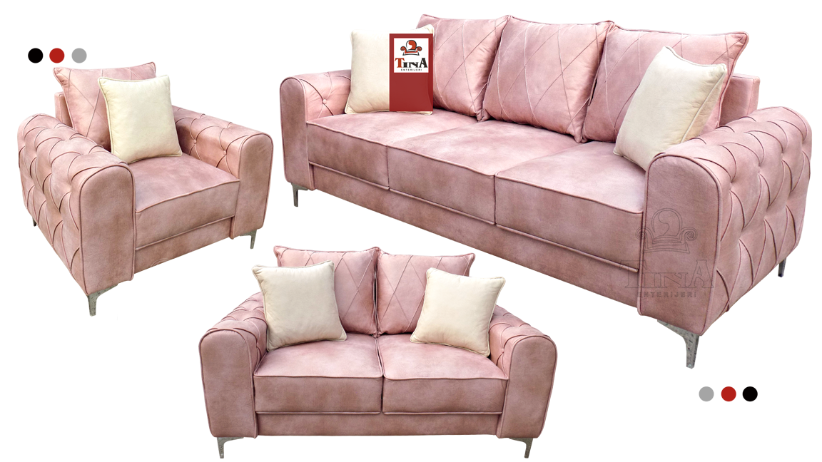 TDF garnitura "Harmony" predstavlja elegantnu kombinaciju minimalističkih oblika, boja, materijala i dezena. Definiše je romantičan i elegantan dizajn i meki oblici rukonaslona koji upotpunjuju masivni sedalni deo.