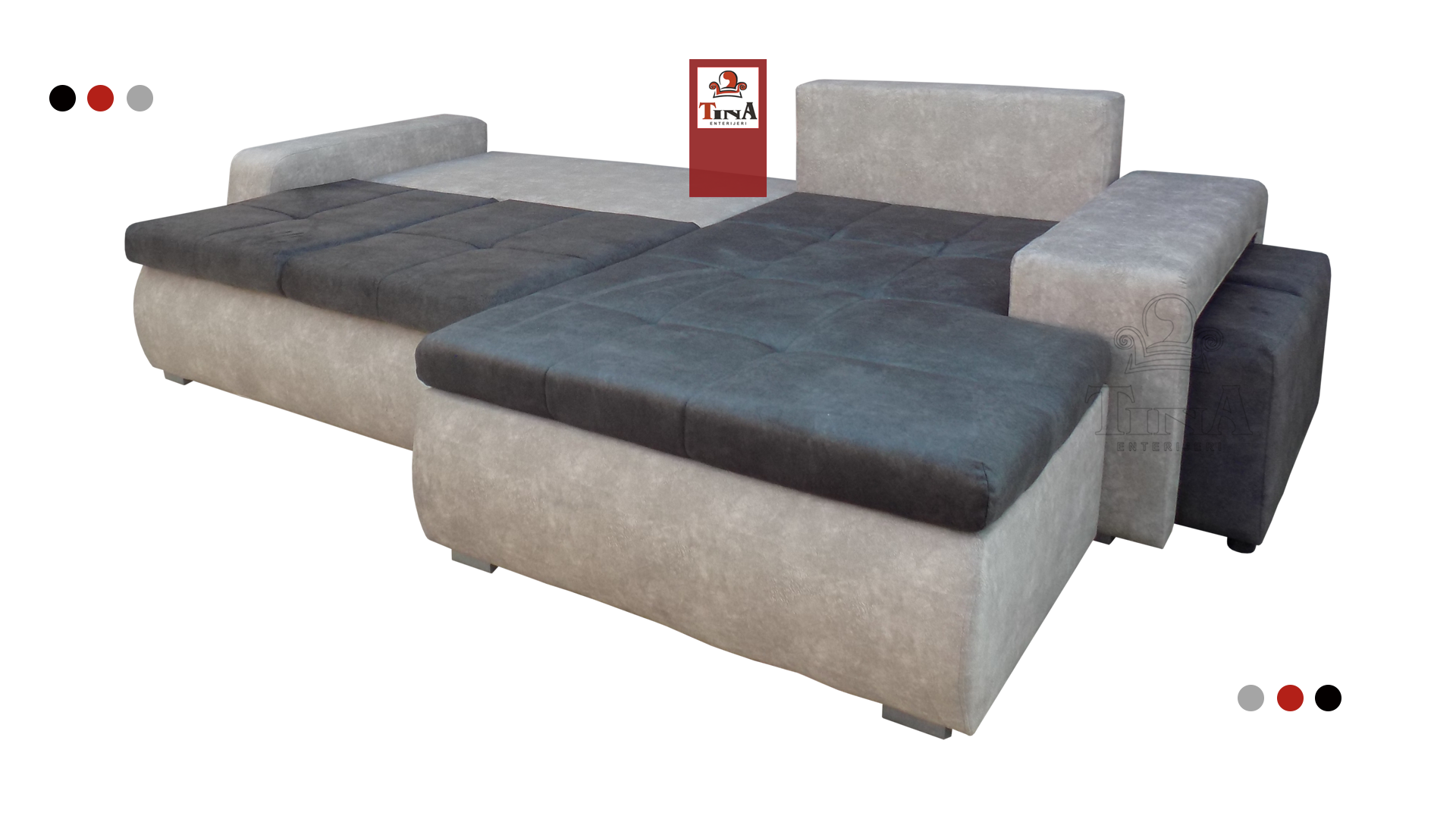 gaona garnitura "Inna Max" nalazi se u kategoriji novih modela na čijem dizajnu i estetskom delu je posebno rađeno. U njenoj izradi primenjeni su najsavremeniji mehanizmi i svakom detalju posvećuje se maksimalna pažnja. Osnovna karakteristika ovog masivnog modela su osim kvalitetnog i modernog dizajna, taburei u sastavu rukonaslona koji su mobilni odnosno, moguće ih je pomerati i rasporediti u različite delove prostorija.Osnovna karakteristika ovog masivnog modela su osim kvalitetnog i modernog dizajna, taburei u sastavu rukonaslona koji su mobilni odnosno, moguće ih je pomerati i rasporediti u različite delove prostorija.